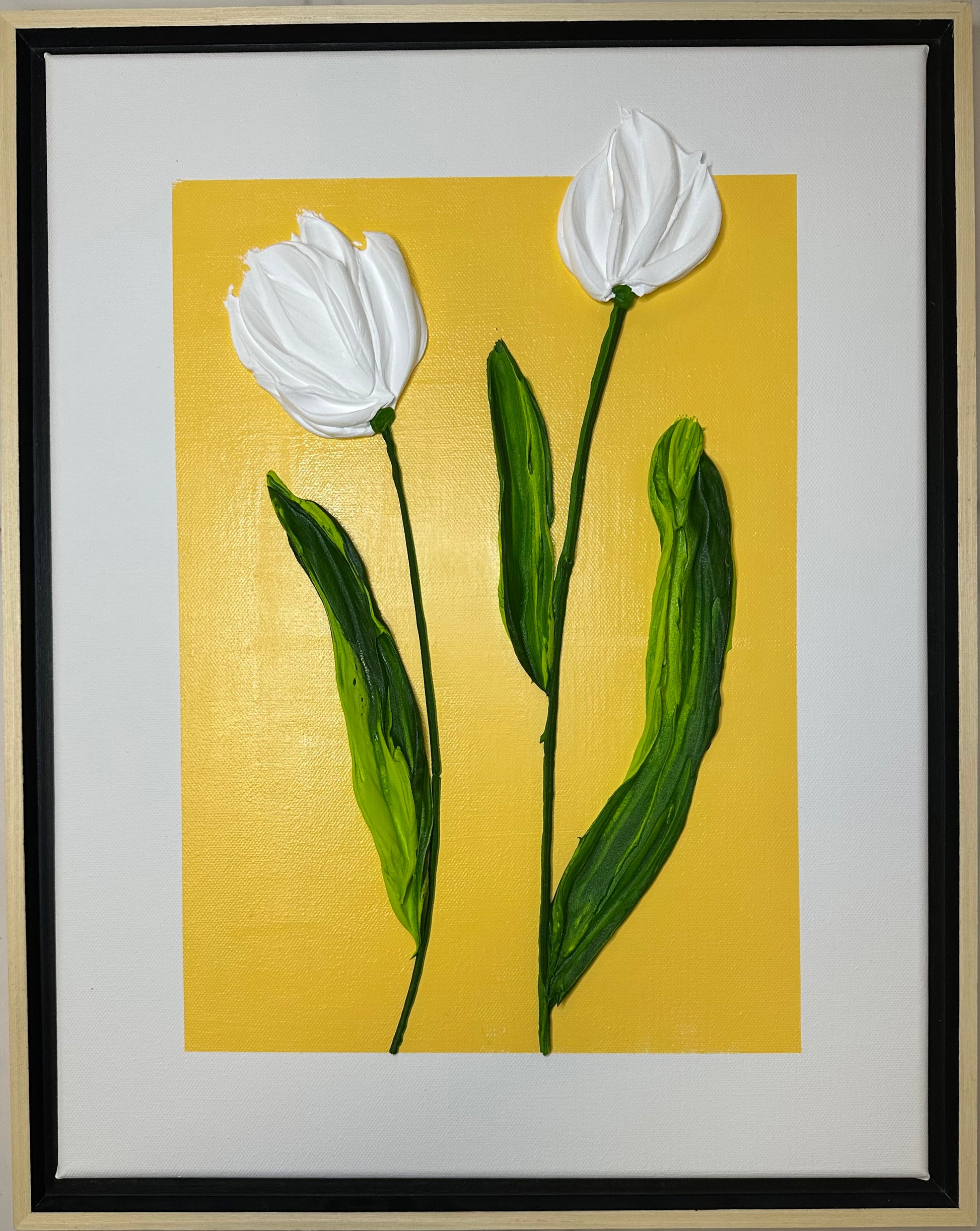 “Whispered Blooms” was inspired by the quiet poetry of nature — tulips standing gracefully in stillness, expressing beauty through subtle form and texture. Designed to evoke calm and clarity, this piece complements modern, minimalist interiors and makes an elegant gift for art lovers who appreciate understated luxury.