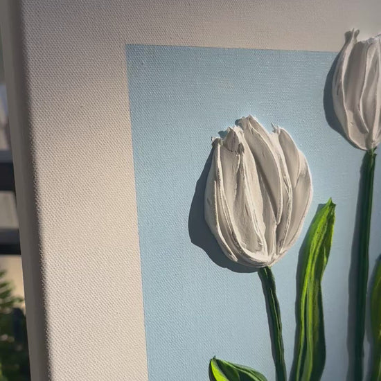 “Whispered Blooms” was inspired by the quiet poetry of nature — tulips standing gracefully in stillness, expressing beauty through subtle form and texture. Designed to evoke calm and clarity, this piece complements modern, minimalist interiors and makes an elegant gift for art lovers who appreciate understated luxury.