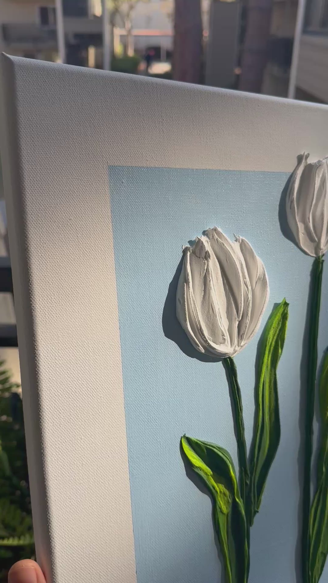 “Still Blooming” is a modern, minimalist tulip painting that celebrates calm, elegance, and simplicity through texture and form. Created with thick, sculpted strokes on a neutral background, this piece captures the beauty of tulips in their most serene and timeless expression.
